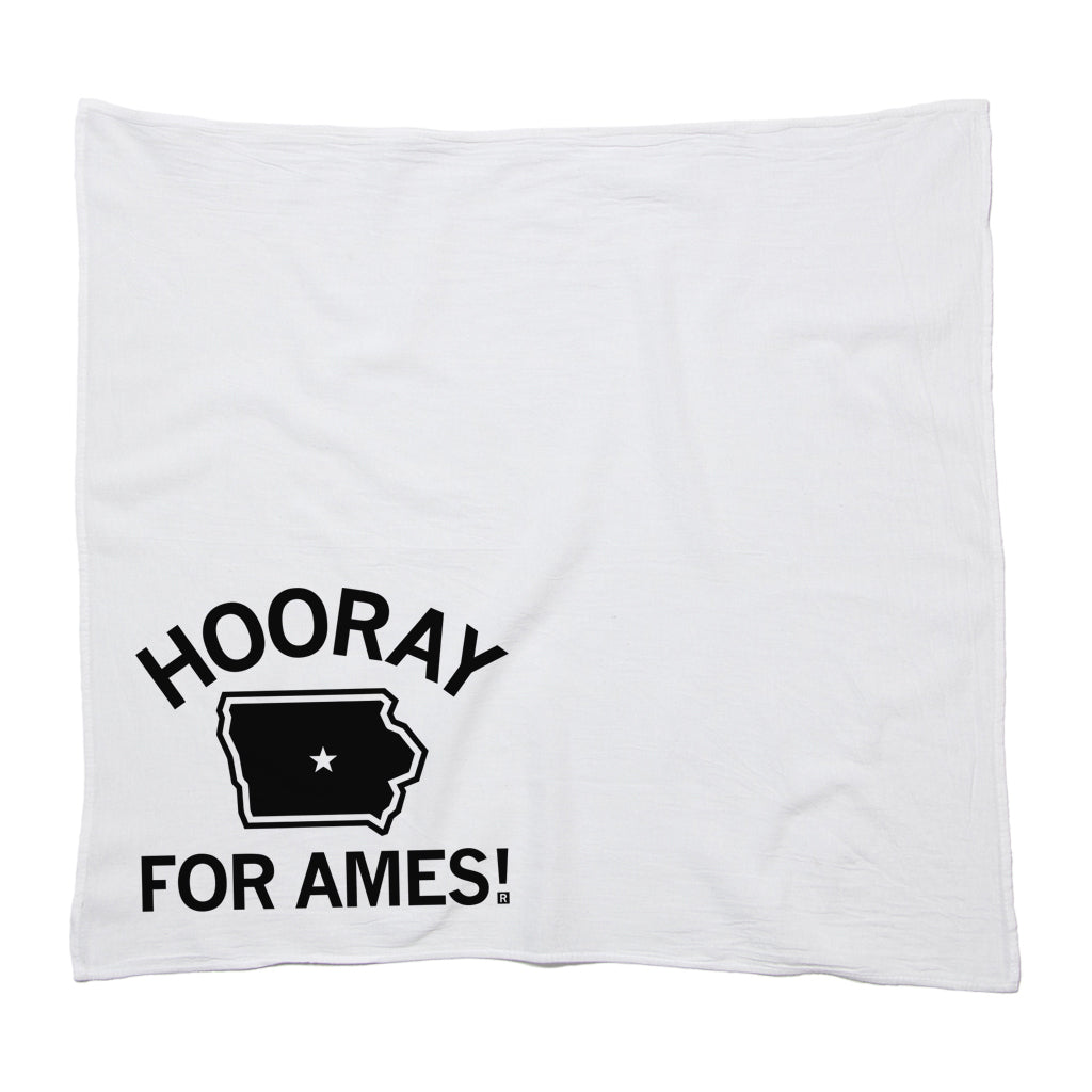 Hooray For Ames! A Portion of All RAYGUN Sales Raise Money For . Black Screen Print on a 28" x 29" flour sack kitchen towel. Designed and printed by  at RAYGUN.