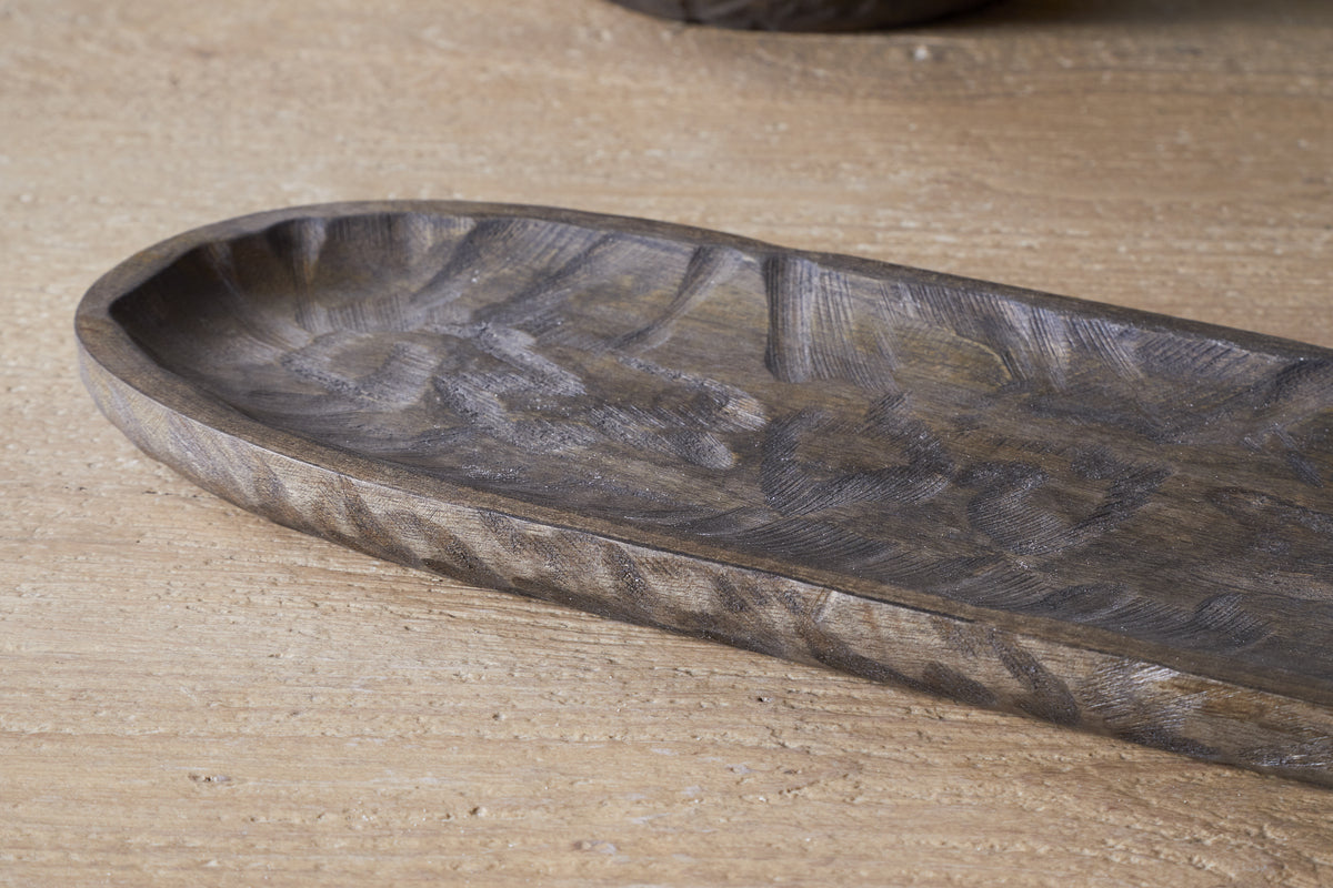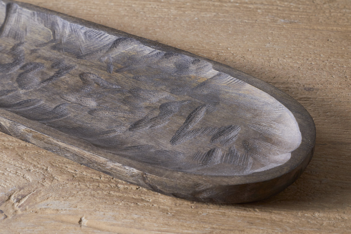A beautifully handcrafted piece, our Nyati Mango Wood platter is perfect for both serving and display. Made from sustainable mango wood, this large platter features intricate hand-etched detailing, adding texture and character. Ideal for serving food or as a stylish base for home accessories, its versatile design makes it a standout addition to any table or countertop.
